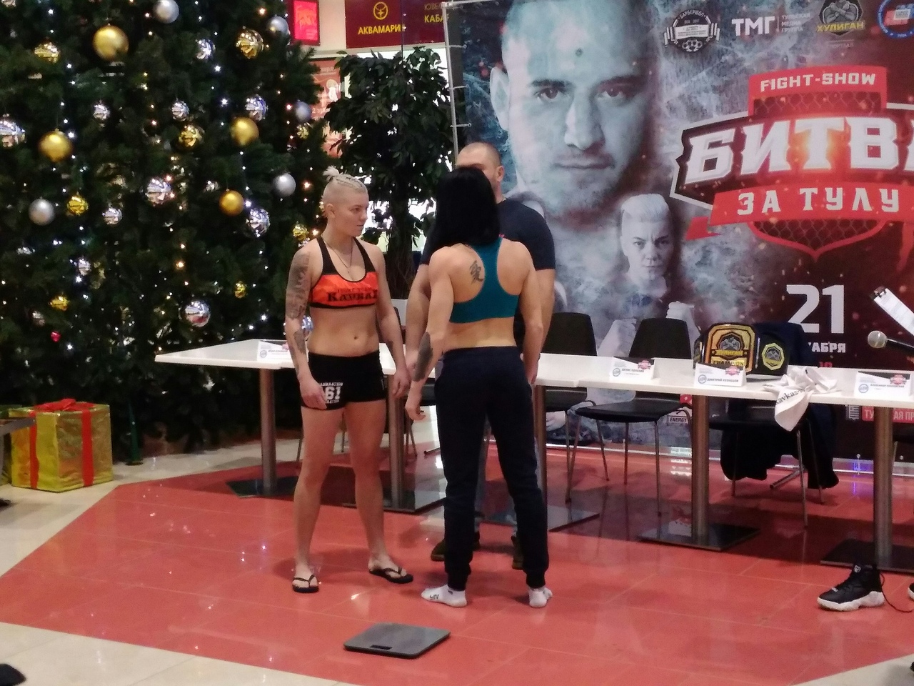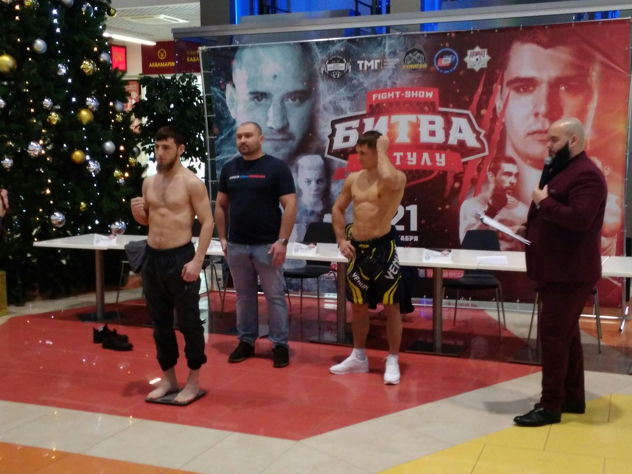 В эти минуты в ТРЦ «Макси» началась церемония взвешивания и дуэли взглядов участников файт-шоу «Битва за Тулу 3».