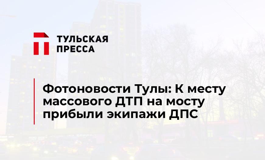 К месту массовой аварии, случившейся утром 25 февраля на Зареченском мосту в сторону центра Тулы, прибыли инспекторы ДПС.