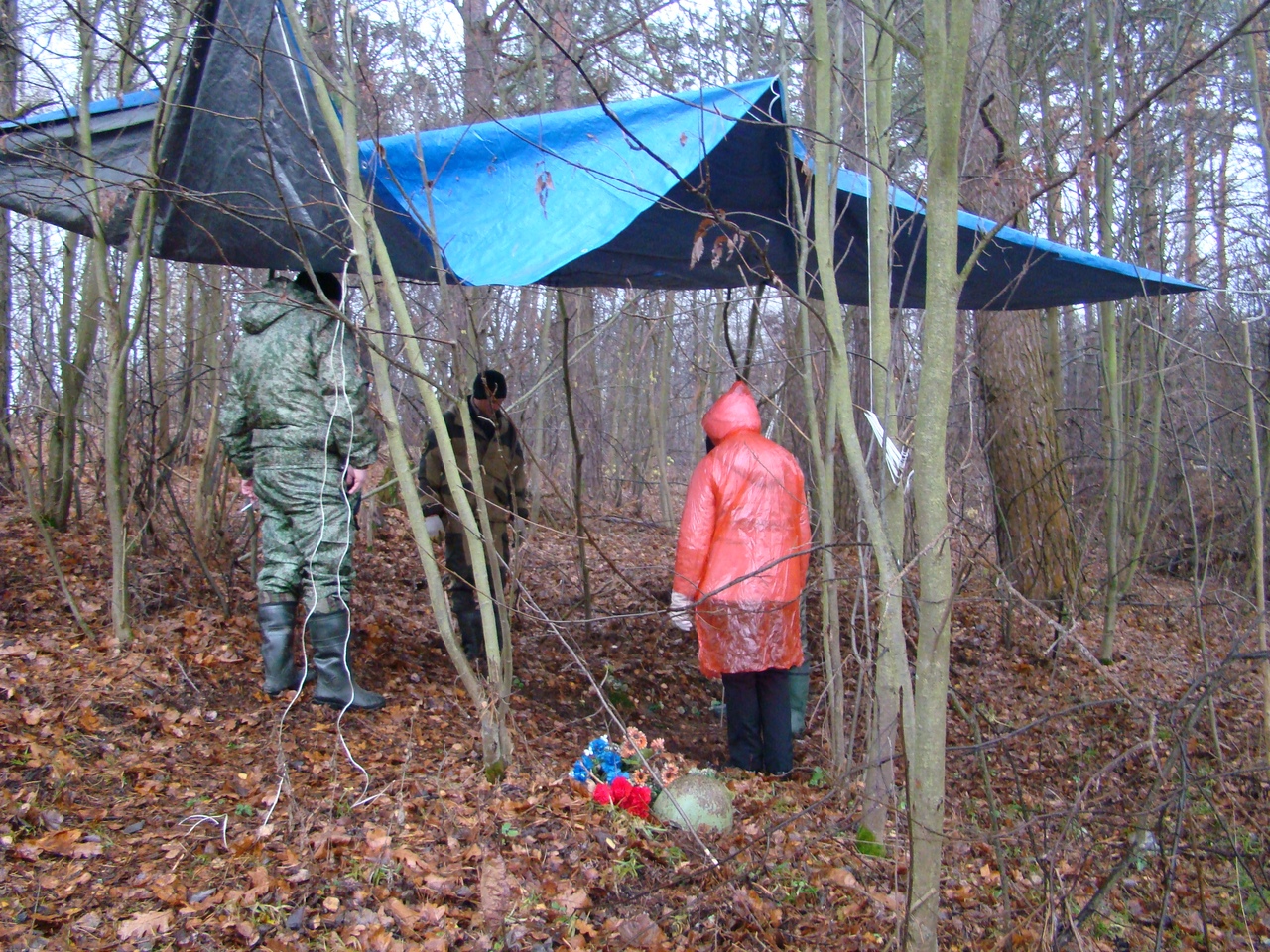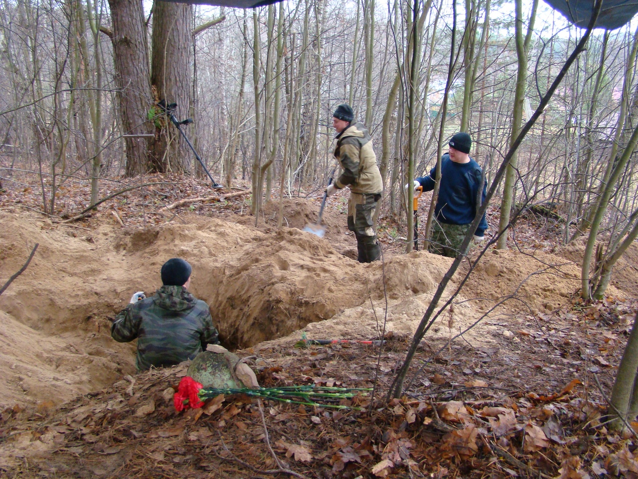 Значит, 10 ноября там натянули тент, над могилкой. Выкопали яму — а там нет никого. Ушли в другую сторону от могилы — опять никого нет. Стали брать правее, выкопали третью могилу, но там снова никого нет. Время было уже 15 минут второго. Нам сказали, что сейчас выкопают ещё четвертую могилу, и если ничего не найдут, то консервируют всё до весны. И вдруг, в половине второго, нашли останки пальцев. Тогда протянули там свет и принялись за работу. В половину пятого бойца полностью откопали.