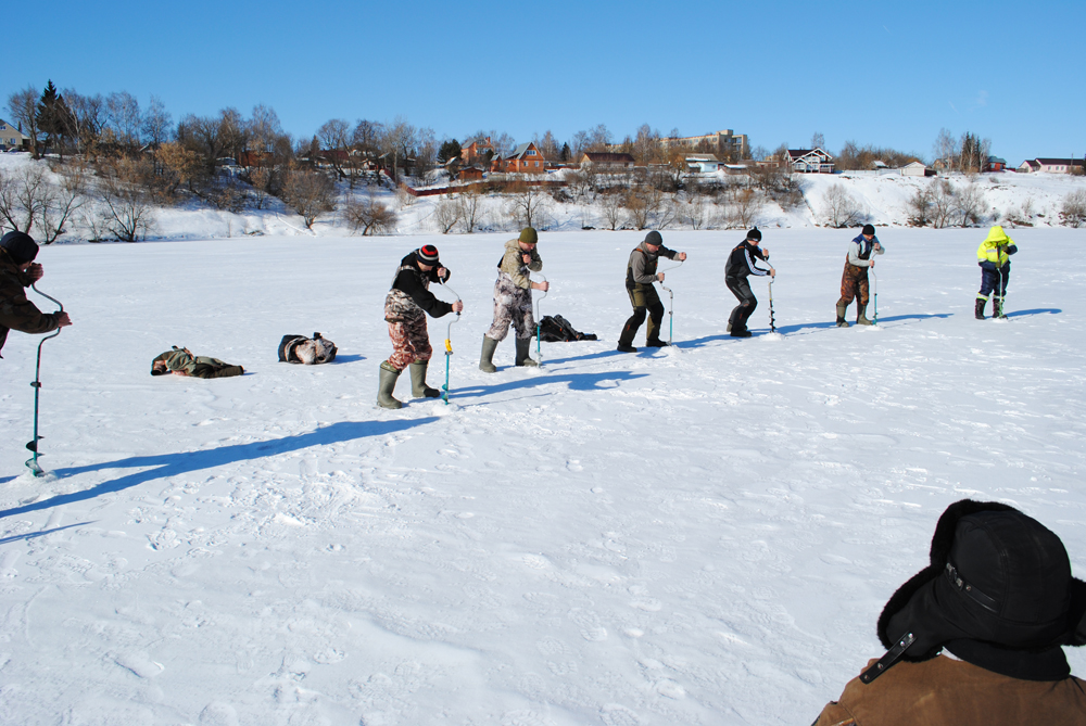 В первом конкурсе по скоростному бурению двух лунок на время победил Д. И. Гукин из Узловой. Второй конкурс — «Зимний забег рыбака» в полной амуниции на 100 метров с рыболовным ящиком и ледобуром выиграл рыбак из Дьяконово Р. В. Саяпин. В конкурсе «Валенок не граната» по метанию валенка на дальность, желающих было так много, что организаторам пришлось немного подождать, пока пролетят все валенки над полем битвы. В итоге в упорной борьбе победил рыбак из Венева А. Ю. Бочарников с результатом 20,2 метра. В конкурсе «Забей гвоздь кувалдой», вес которой 5 кг, потребовалось три «перестрела» для выявления победителя, им стал В. А. Двориков из Ширино.