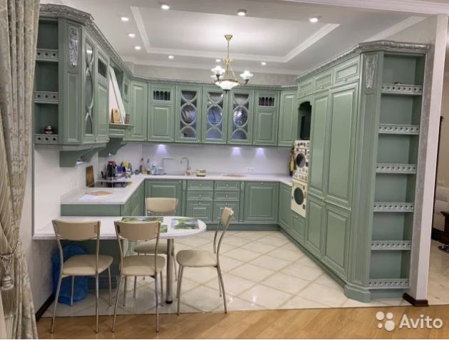 «В квартире большая кухня-гостиная, 3 спальни, кабинет, 3 санузла, гардеробные в каждой комнате, а также личное кладовое помещение на этаже».