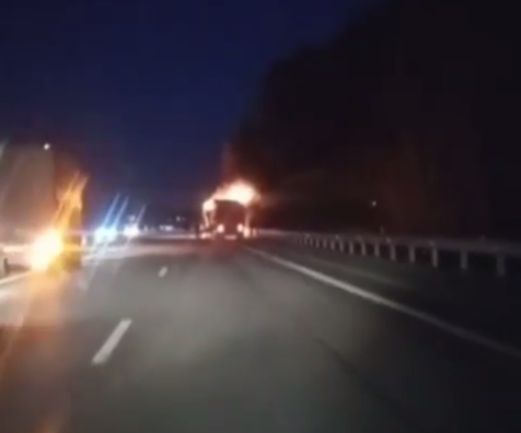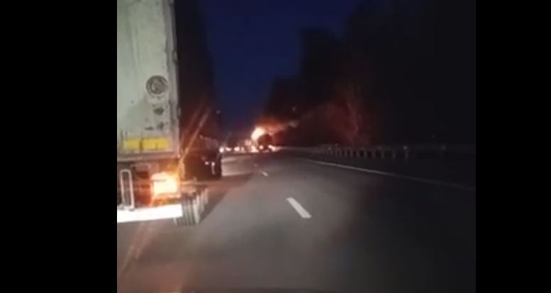 Сегодня ночью на трассе «Дон» произошёл сильный пожар — загорелась фура.