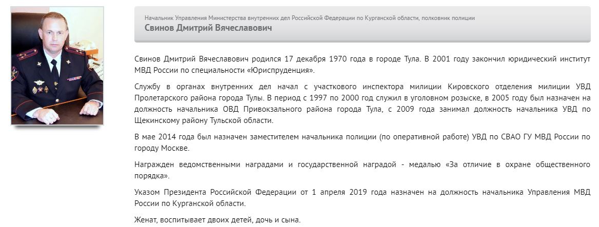 Дмитрий Свинов Указом президента назначен на должность начальника УМВД по Курганской области — к исполнению обязанностей он приступил с 1 апреля.