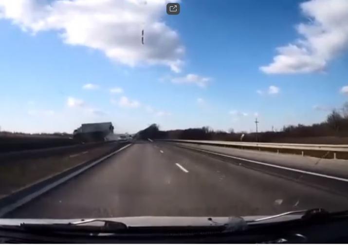Ещё одно ДТП с фурой: произошло приблизительно в начале апреля. Кадры крушения заснял на видеорегистратор проезжавший мимо автомобилист.