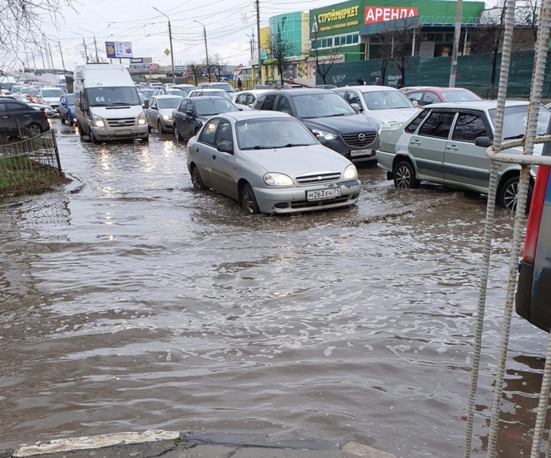 Туляки опубликовали в соцсетях фотографию затопленной дороги на улице Бондаренко.