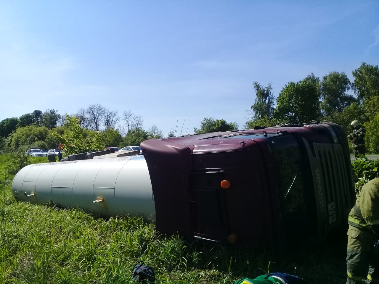 На Новомосковском шоссе опрокинулась автоцистерна: водителю стало плохо за рулём