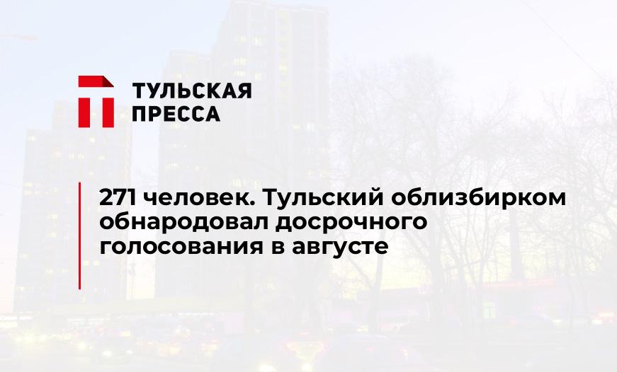 По данным системы «ГАС ВЫБОРЫ» на 31 августа, в целом по области досрочно проголосовал 271 человек, или 0,04% избирателей. На выборах депутатов Тульской городской Думы досрочно проголосовал 121 человек — 0,03% избирателей.