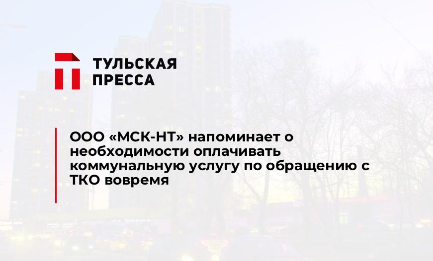 Региональный оператор «МСК-НТ» несёт ответственность за обращение с ТКО на территории Тульской области, кроме Тулы, Щёкинского и Киреевского районов. Для качественного и своевременного оказания коммунальной услуги потребителям нужно оплачивать её в полном объёме, чтобы не получить начисление пени и штрафов за просрочку платежей. На сайте ООО «МСК-НТ» отражена информация, где можно оплатить услугу без комиссии. Оплачивайте её вовремя, чтобы жить в чистом регионе.