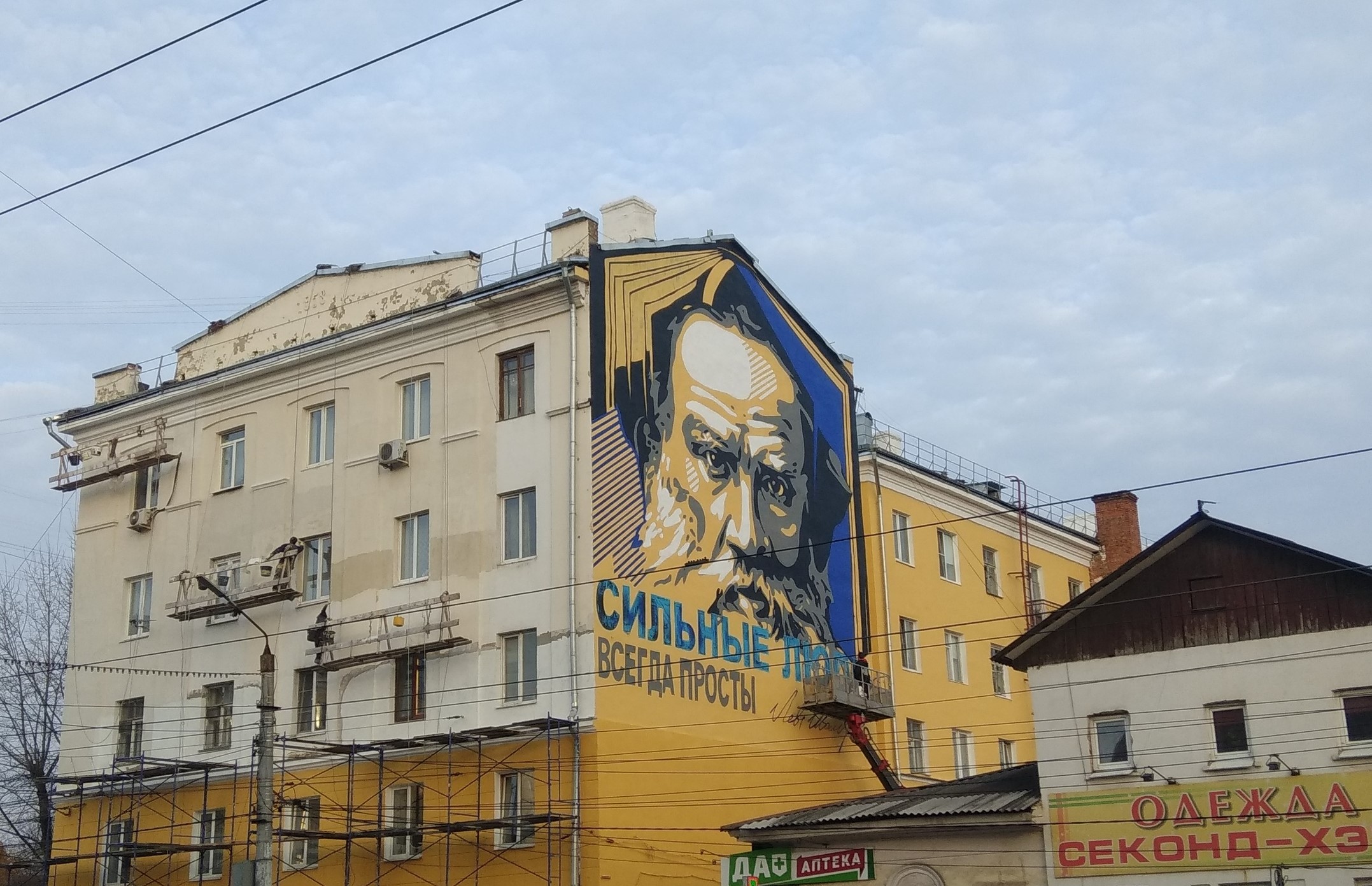 На отремонтированном доме на улице Октябрьская появился портрет Льва Толстого.