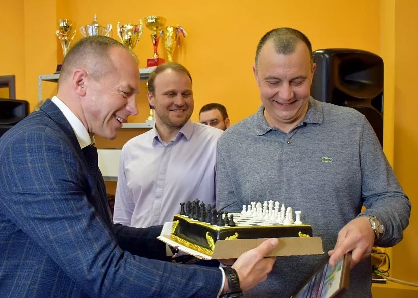 Также руководитель вручил Евгению Петрову благодарственное письмо и торт в виде шахматной доски с фигурами, поблагодарив компанию за оказанную помощь.