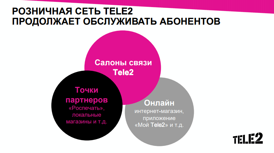 Интересно, что много лет оператор развивал так называемую альтернативную розницу: открывал точки продаж SIM-карт в отделениях «Почты России», киосках «Роспечати», локальных магазинах техники и продуктовых. Сейчас эта сеть позволяет жителям из небольших сел подключать себе интернет и переходить на удаленный режим работы, делать покупки онлайн.