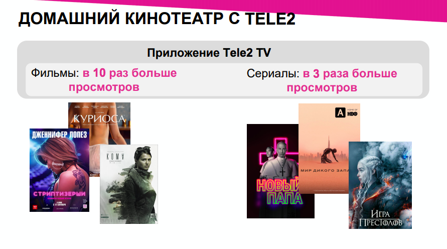 В компании проанализировали статистику приложения Tele2 TV, через которое можно смотреть новинки кинематографа и любимые ленты. Неудивительно, что за последнюю неделю количество просмотров фильмов выросло в 10 раз, а сериалов – в 3 раза.