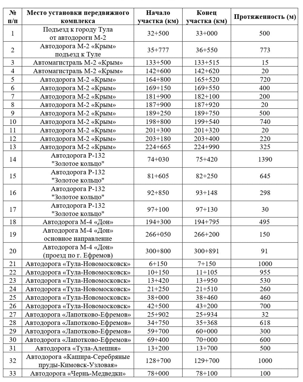 На дорогах тульского региона вновь поменяют места размещения передвижных камер фиксации нарушений ПДД