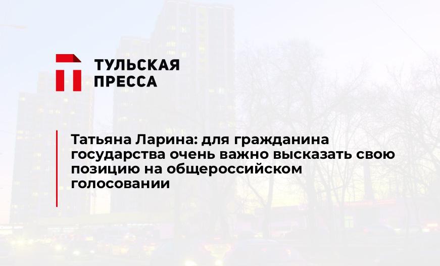 — Что такое Конституция? Это документ, который четко закрепляет права и обязанности и государства, и его граждан. Я бы сказала некий общественный договор, когда гражданин принимает на себя определенные обязательства, но при этом может рассчитывать на помощь и защиту государства. В чем суть этих договоренностей, каковы обязательства сторон друг перед другом? Эти вопросы не могут не волновать гражданина. Как и любые изменения, вносимые в основной закон страны. Именно поэтому я считаю так важно высказать свое мнение, свою позицию на общероссийском голосовании, — заявила Татьяна Ларина.