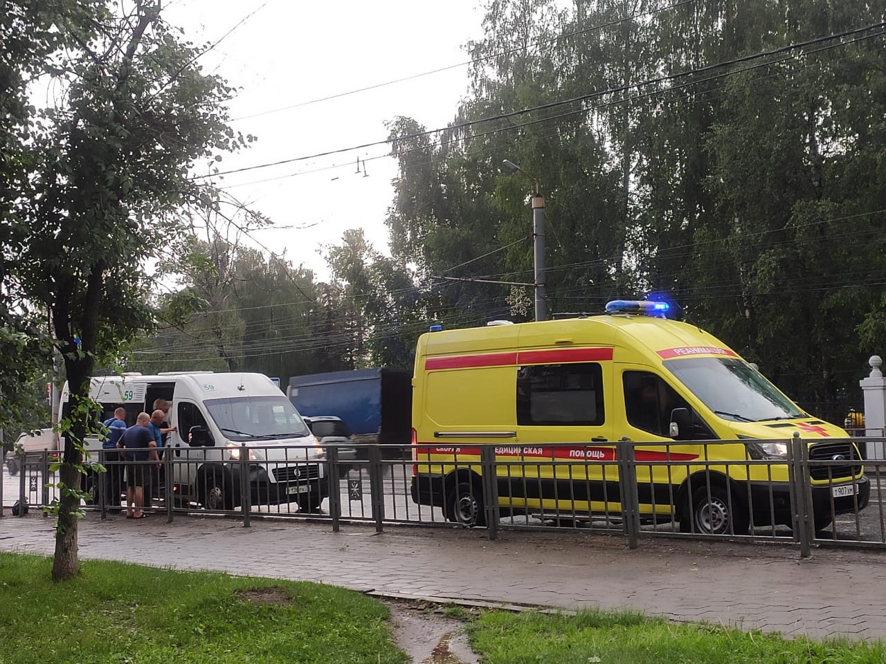 Сильный ветер даже выбил стекло в маршрутке — сейчас на Октябрьской улице работает скорая помощь.