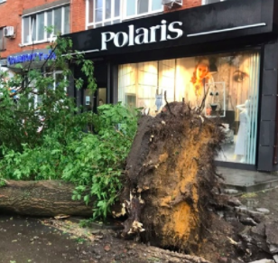 На улице Пузакова неудачно рухнувшее дерево приземлилось прямо на крышу авто, а на Октябрьской улице сломанные ветви и шифер с крыши завалили детскую площадку.