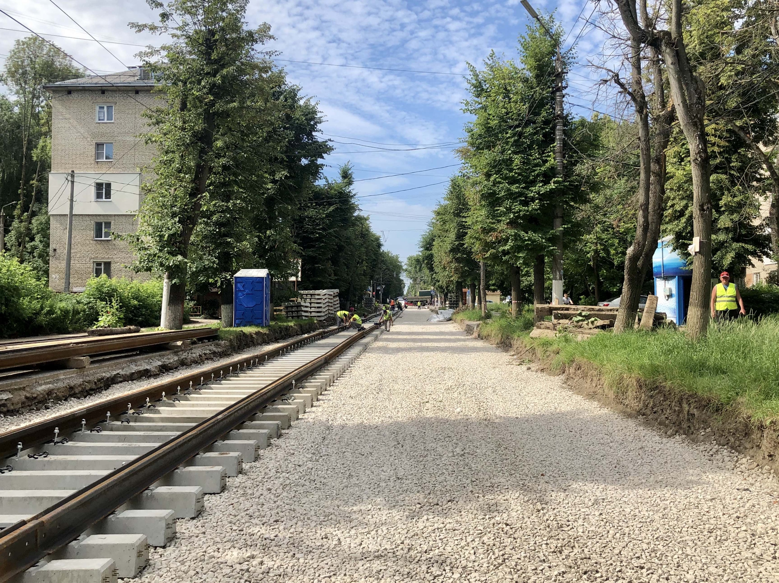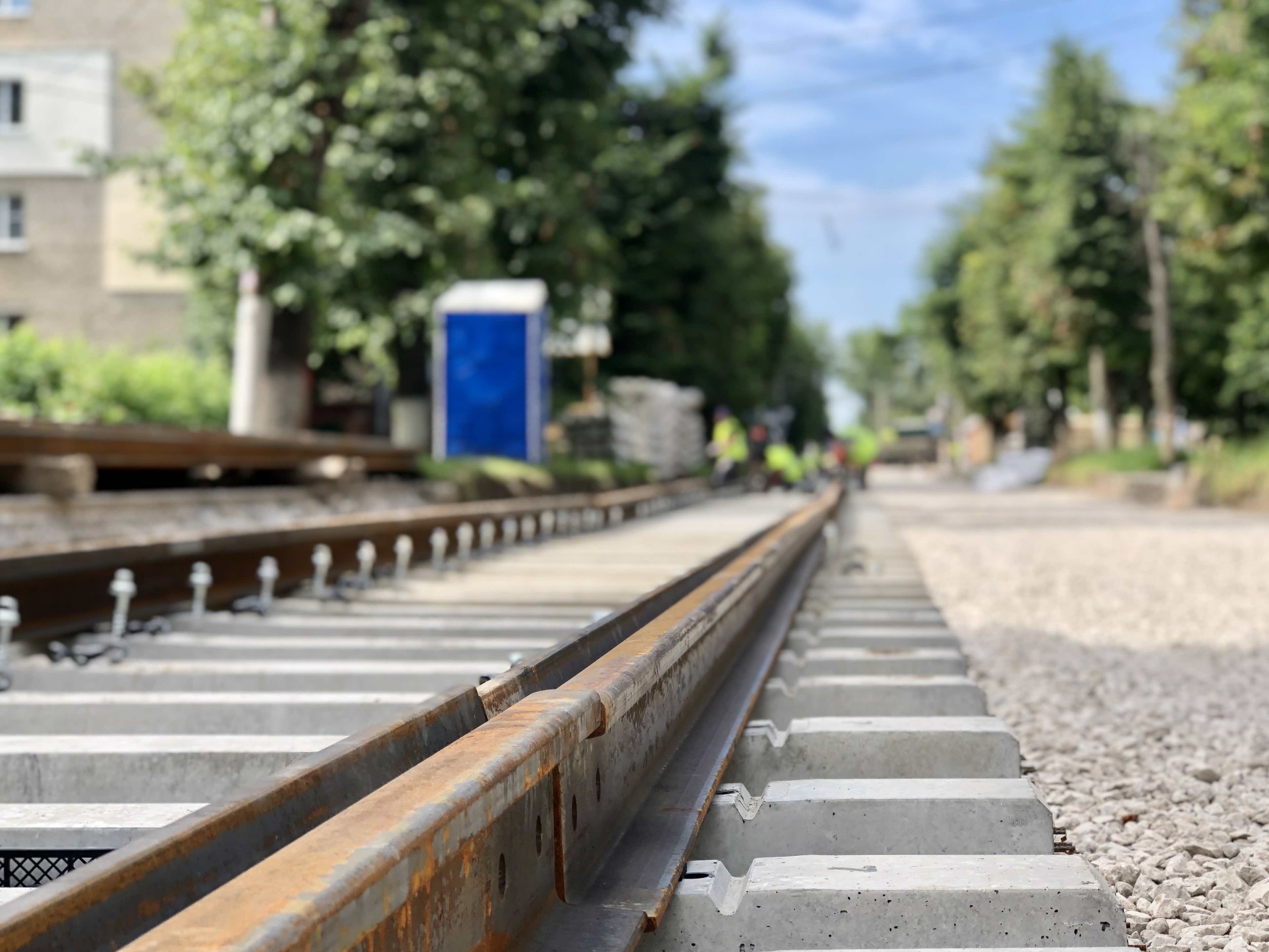 начаты и ведутся работы по монтажу рельс и шпал на участке от ул. Первомайской до ул. Льва Толстого.