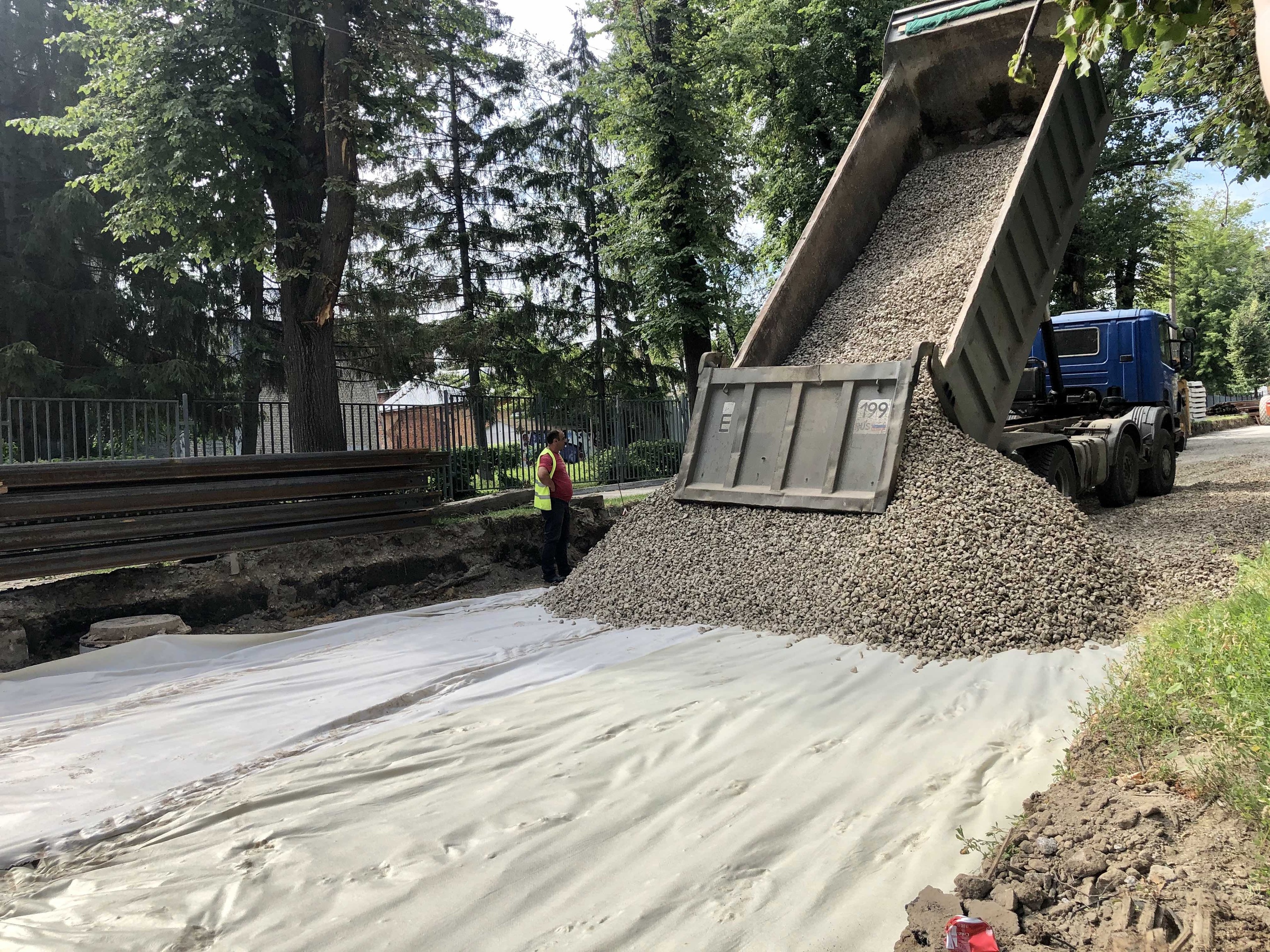 «Мы меняем шпалы и рельсы на более современные, самое главное — резиновые подкладки, которые снижают динамику рельсов во время движения трамвая. Другая особенность — укладка специального геополотна «дорнит 400», которое не позволяет щебню уйти в грунт, контролирует просадку и обеспечивает гидроизоляцию».