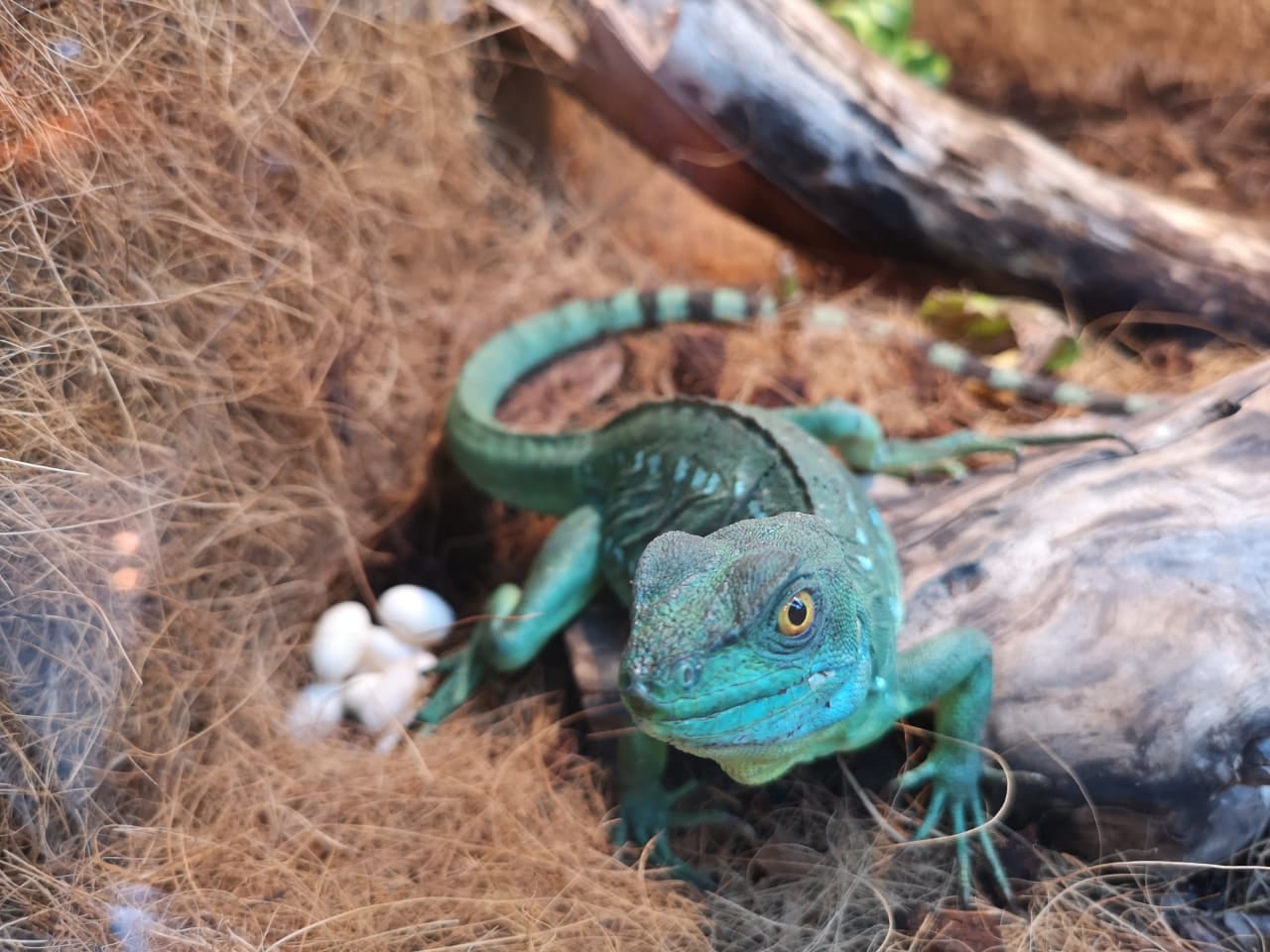 В Тульском экзотариуме капский варан укусил сотрудника. В понедельник самка шлемоносного василиска отложила 13 яиц.