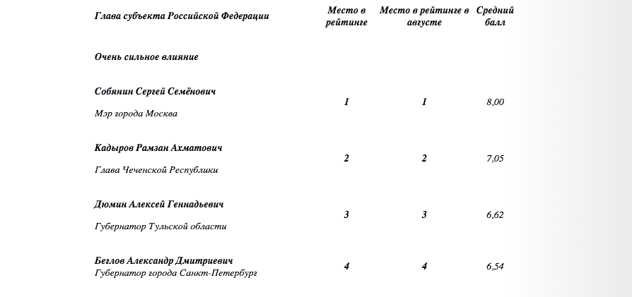 Отметим, что губернатор Тульской области регулярно входит в первую пятерку рейтинга влияния глав субъектов РФ. Так, в сентябрьском рейтинге Агентства политических и экономических коммуникаций (АПЭК) Алексей Дюмин занял третье место, уступив только мэру Москвы Сергею Собянину и главе Чеченской Республики Рамзану Кадырову.