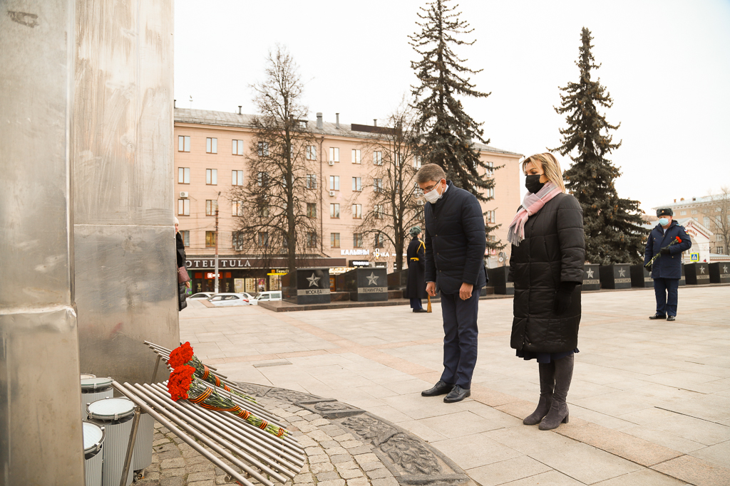 Мэр Тулы Ольга Слюсарева и глава городской администрации Дмитрий Миляев возложили цветы к Вечному огню на площади Победы.