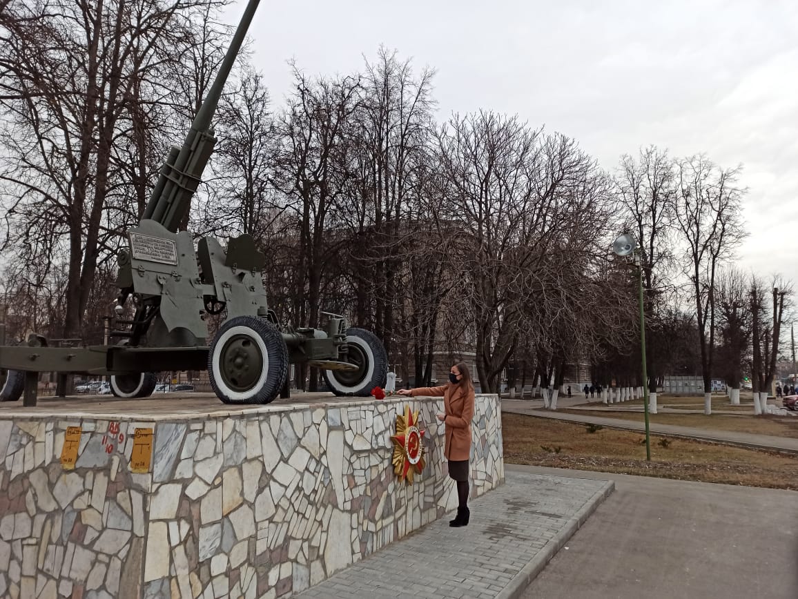 Зампред Тульской городской Думы Анастасия Дементьева и представители главного управления по Советскому округу возложили цветы на Братском захоронении на Всехсвятском кладбище и у памятного знака 85-мм зенитному орудию возле корпуса №2 ТулГУ.