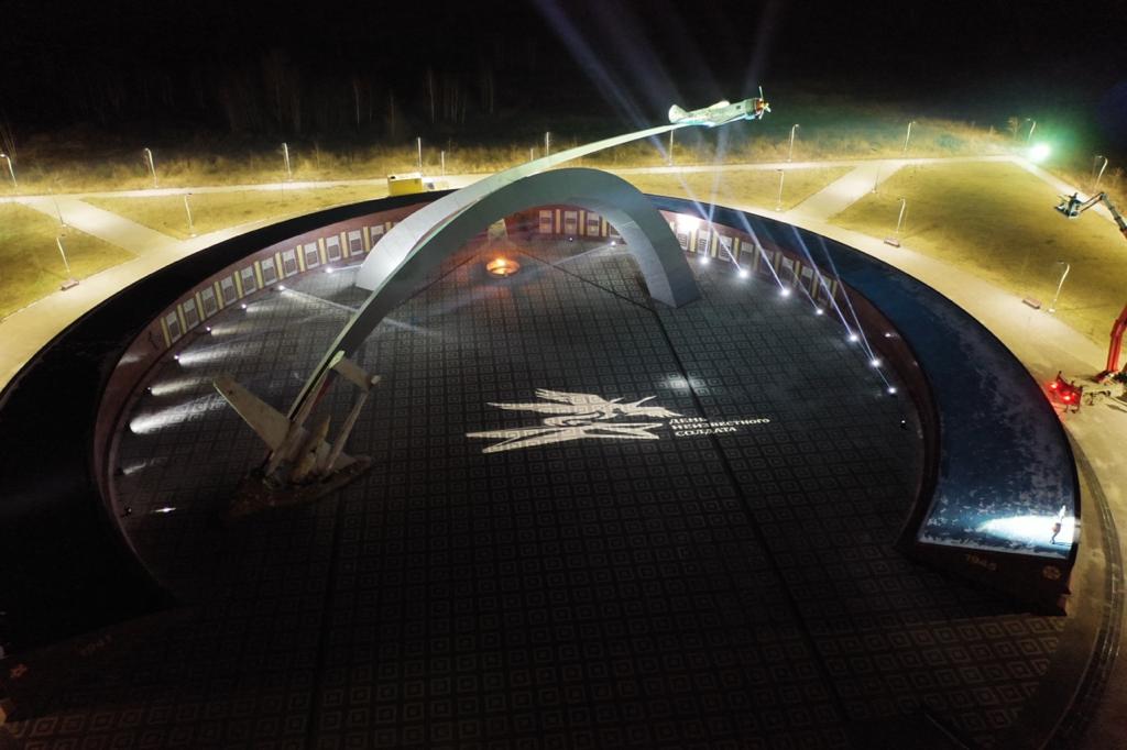 Так, в Туле лучевая проекция подсвечивает весь мемориал «Защитникам неба Отечества» и символ День неизвестного солдата. Аналогичные проекции работают на мемориалах в Новомоскоуске, Узловой и Донском.