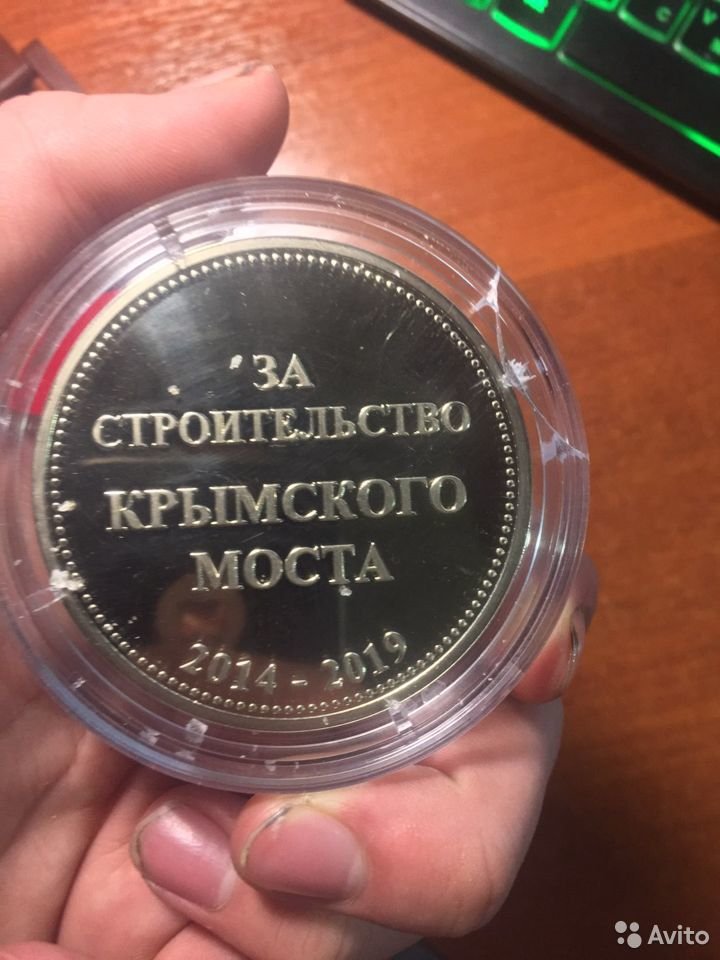 Другой туляк продает на «Авито» медаль «За строительство Крымского моста». Такими медалями были награждены специалисты, мастера, инженеры, механики, слесари, бригадиры и другие участники строительства.