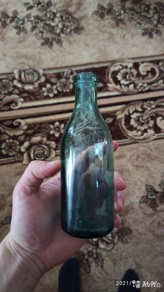 Продавец утверждает, что бутылочка времен Советского Союза была найдена в подвале частного дома — «осталась от учительницы». Сколов нет, сама бутылочка не изношена, ее объем — 250 мл.