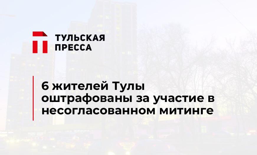 Шесть жителей Тулы получили административные штрафы за участие в несогласованном митинге. Об этом 27 января сообщили в управлении судебного департамента Тульской области. Протоколы о нарушениях административного кодекса рассмотрели в Привокзальном районном суде.