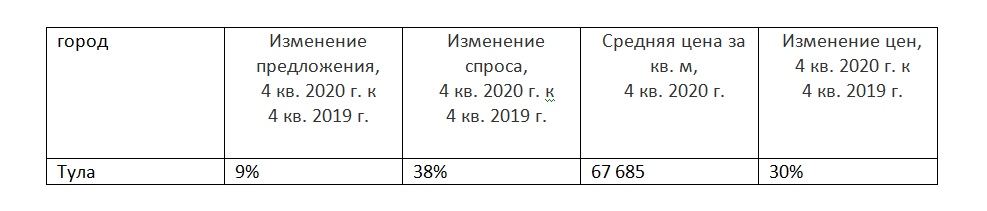 «Стоит сказать, что несмотря на замедление роста спроса в IV квартале (значения оставались почти на том же уровне, что и осенью), его показатели по стране увеличились на 23% в сравнении с аналогичным периодом 2019 года, в Туле спрос вырос на 38%. При этом структура спроса на разные виды первичной жилой недвижимости в течение года менялась незначительно»