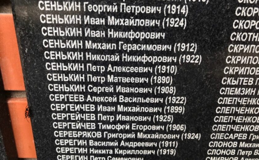 В моей семье дед Петр Матвеевич Сенькин – командир партизанского отряда погиб в 1941 году, защищая Тулу. Его фамилия, наряду с тысячами дубенцев, павших смертью храбрых в боях за освобождение родной земли, высечена на мемориальной доске у Вечного огня в Дубне.