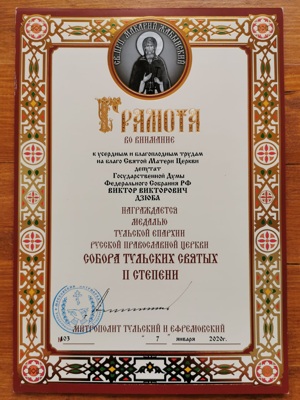 Мне повезло родиться и вырасти в замечательном городе с уникальным культурно-историческим наследим — Туле, в истинно русской православной семье и думаю, именно это сделало вопросы восстановления храмов и строительство церковно-приходских воскресных школ в Тульской области частью моего мировоззрения. За последние несколько лет была проведена реконструкция храма Спаса Нерукотворного в Туле, Свято-Никольского храма в д. Кочаки Щекинского района. Рядом с Свято-Никольским храмом захоронена Блаженная матушка Евдокия, к которой со всех уголков нашей страны едут сотни паломников с мольбой о помощи. На месте захоронения Блаженной Евдокии были проведены реставрационные работы ограждения, установлена новая позолоченная сень с куполом.