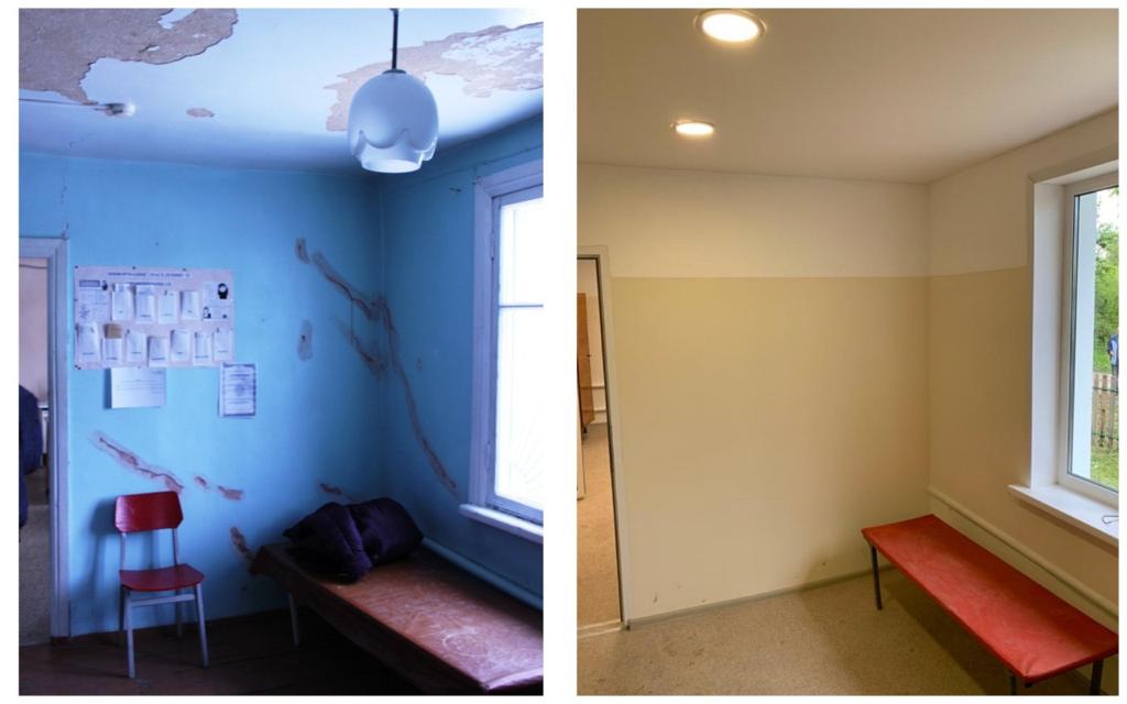В фельдшерско-акушерских пунктах были выполнены следующие работы: ремонт фасадов, кровли, фронтонов с облицовкой сайдингом, наружных коммунальных сетей, водоотведения и отмостки вокруг зданий, отделка внутренних помещений, произведена замена инженерных сетей, внутренней электропроводки, электрооборудования, газового оборудования, сантехники, оконных и дверных блоков.