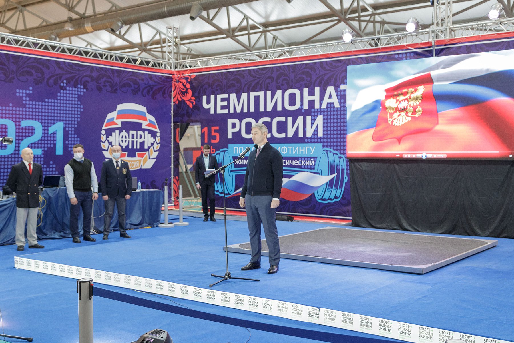 «В 1988 году в городе Красноярске был проведен первый чемпионат по пауэрлифтингу. И вот уже более чем 30-летняя история двигает нас вперед. Все эти годы были ошибки, поиски, но наш вид спорта двигался равномерно и развивался, завоевывая лидирующее положение не только в России, но и за рубежом», — заявил заслуженный тренер России по пауэрлифтингу Александр Бычков.