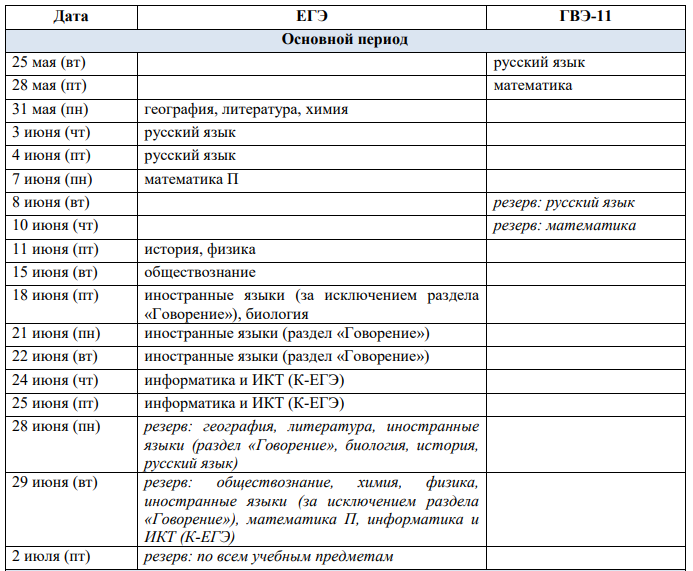 Проект расписания сдачи ЕГЭ И ГВЭ-11 в 2021 году