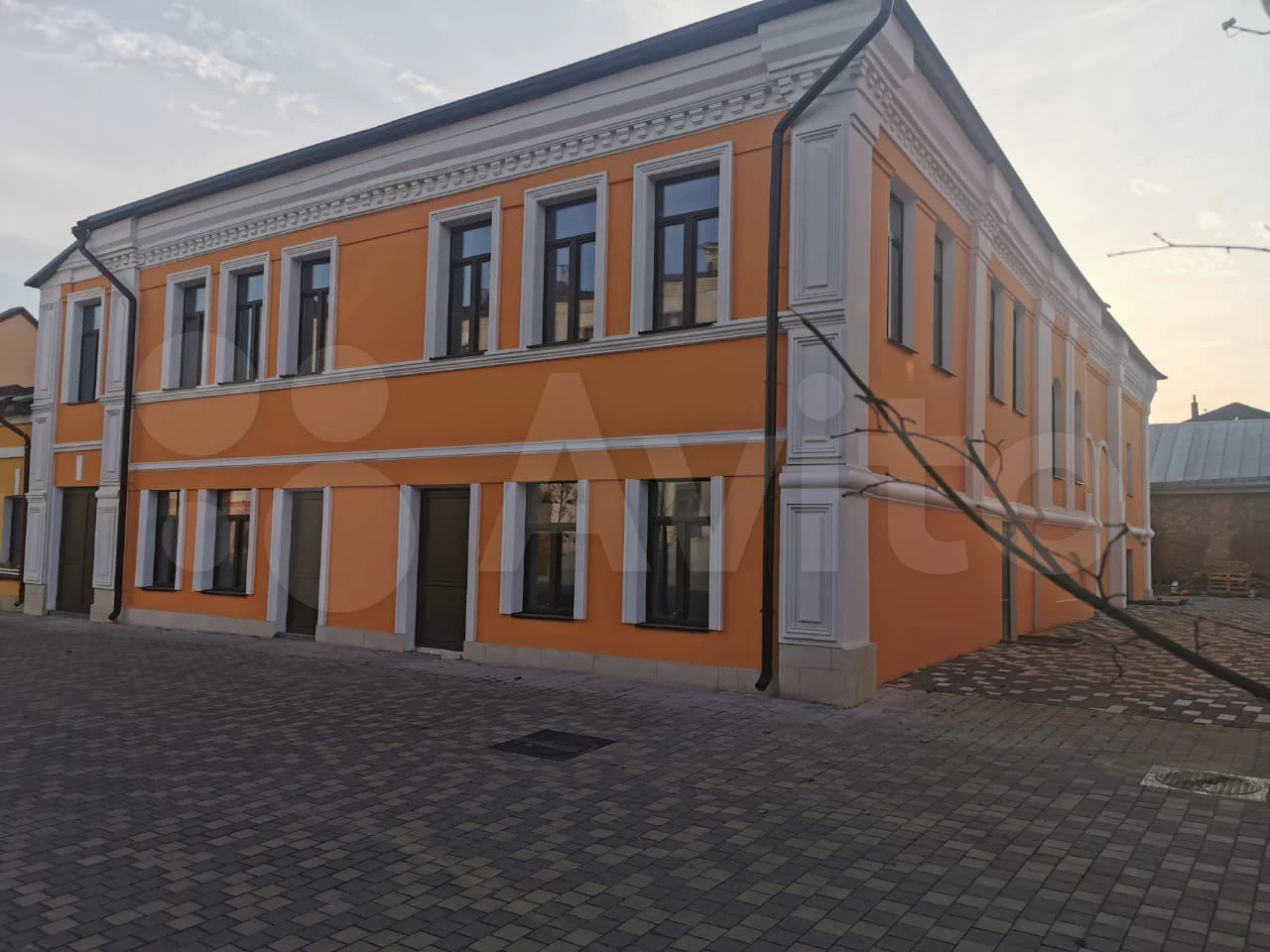 Здание двухэтажное. Как сообщается в объявлении, есть отдельный вход и парковка. Площадь — 160 кв.м.
