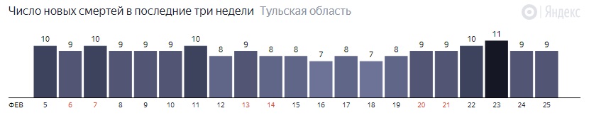 25 февраля в Тульской области были зарегистрированы еще 9 летальных случаев среди пациентов с подтвержденным коронавирусом. Об этом сообщает федеральный оперштаб.