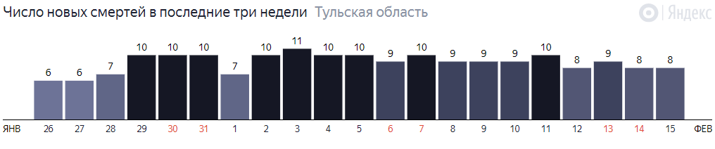 По данным федерального оперштаба, за последние сутки в Тульской области зарегистрированы 8 летальных случаев среди пациентов с коронавирусом.