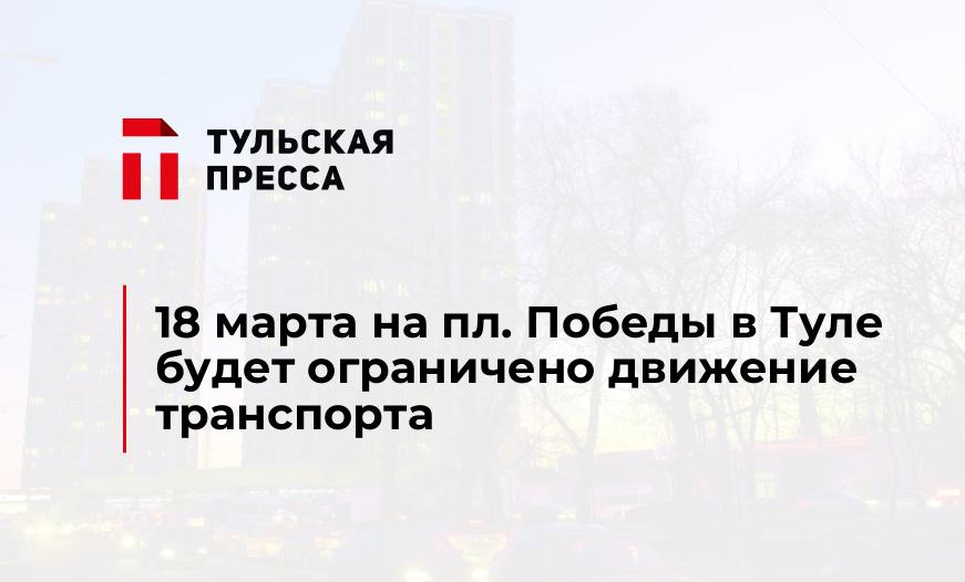 18 марта в Туле у площади Победы введут ограничения движения. По данным городской администрации, в 18 четверг там планируется проведение «Севастопольского вальса»: под одноименную песню творческие коллективы оружейной столицы и гости праздника исполнят классический танец. Для этого будет запрещена стоянка и остановка любого транспорта как на площади, так и на прилегающей к ней территории с полуночи до 15 часов. Движение 18 марта ограничат на время с 6 до 15 часов.