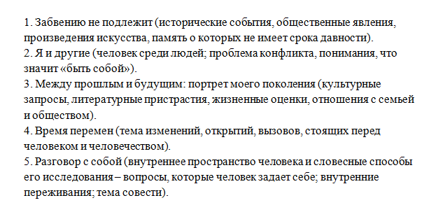 Темы для итогового сочинения на 2020/21 учебный год