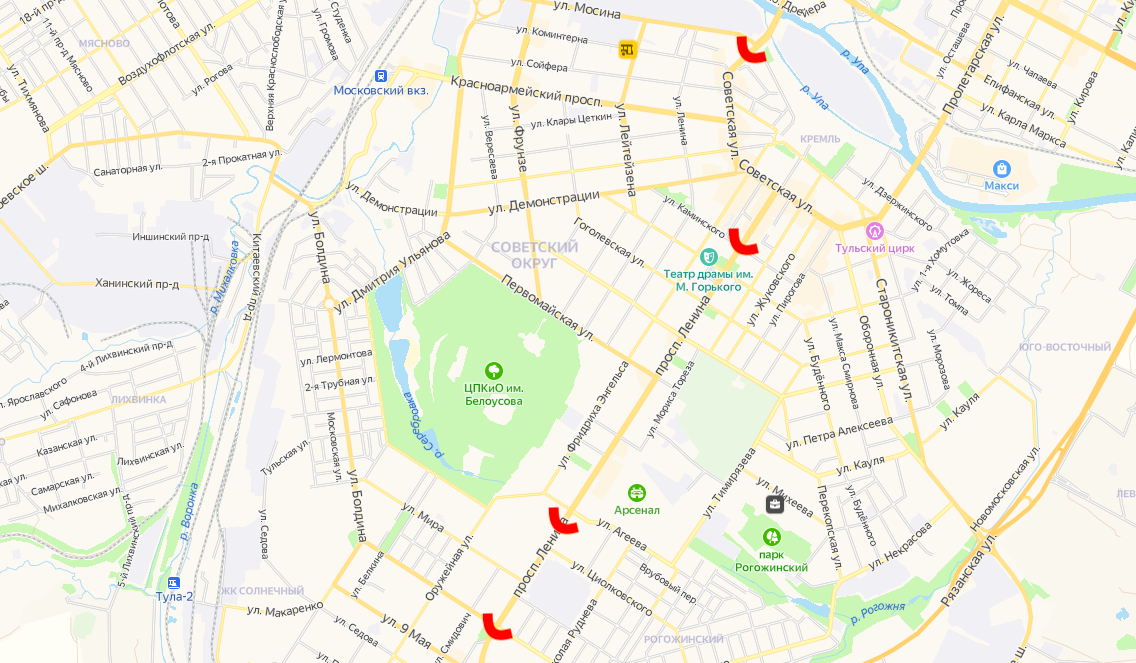 В Туле насчитывается всего 4 подземных пешеходных перехода: три на проспекте Ленина (на перекрестке с улицей Каминского, перекрестке с улицей Болдина и в районе пересечения с улицей Агеева) и один на Советской улице — под перекрестком с Мосина.