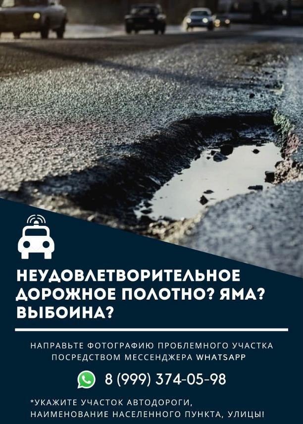 В Туле появилась возможность быстро и удобно сообщить о некачественном дорожном покрытии. Для этого тулякам достаточно отправить сообщение в мессенджер WhatsApp с указанием расположения ямы. Не забудьте приложить фотографию разбитой дороги.