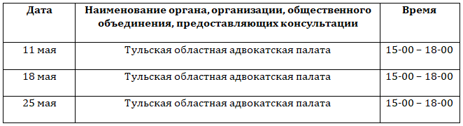 График предоставления юридических консультаций на май 2021 года