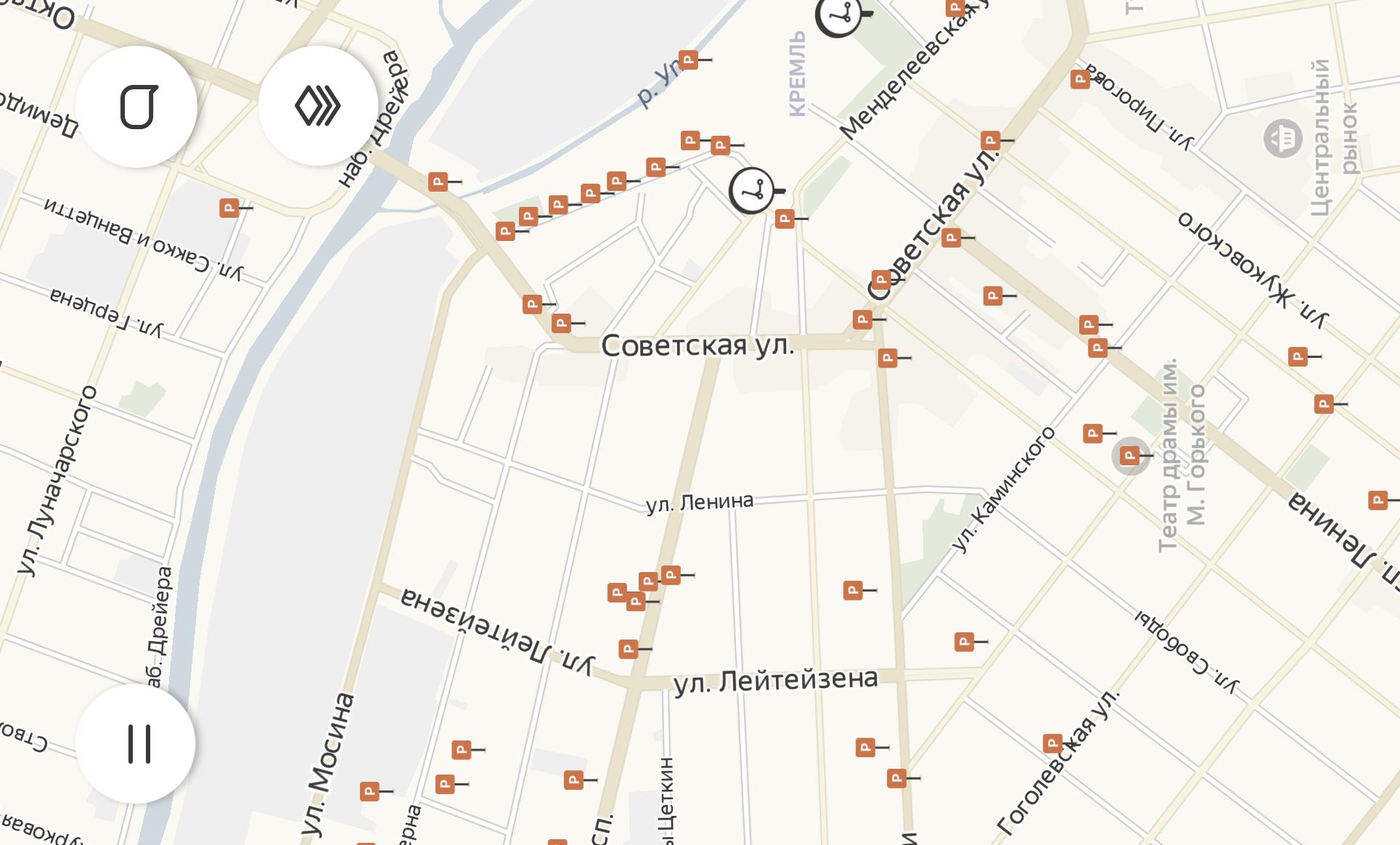Довольно обширна территория Зареченского района — границы очерчивают Комсомольский парк, железная дорога в районе Белых ворот, улицы Ряжская и Галкина. Оставить или найти электросамокат можно на Октябрьской, М. Горького, Заварной и Демидовской.