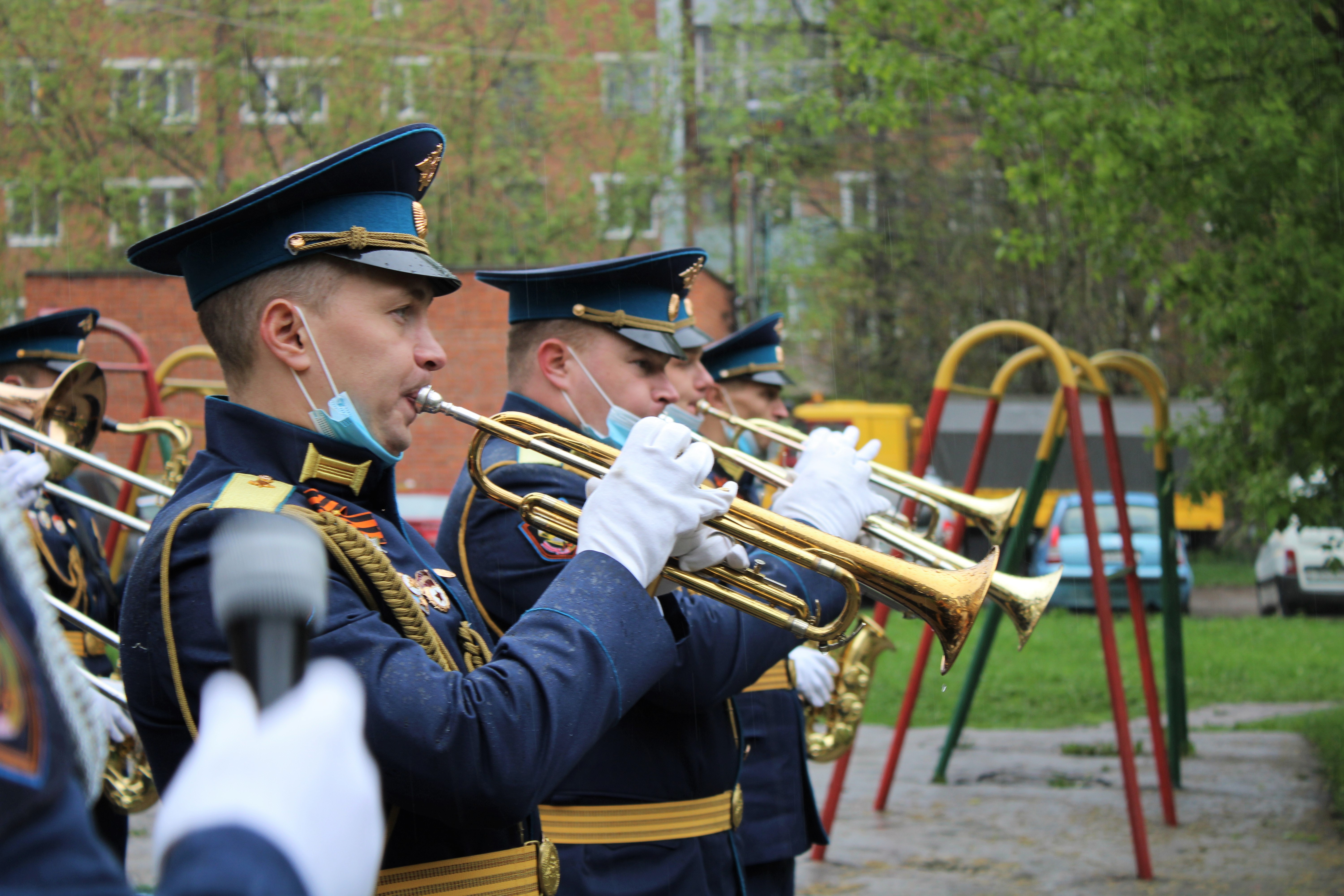 Празднование Дня Победы в 75-ю годовщину прошло в условиях пандемии COVID-19. Военный парад в этот день был отменен, а ветеранов войны поздравляли, исполняя песни под окнами их домов. Например, ветерана Великой Отечественной войны Ивана Васильевича Федосеева поздравлял оркестр 106-й гвардейской воздушно-десантной дивизии. Фотографии — ИА «Тульская пресса».