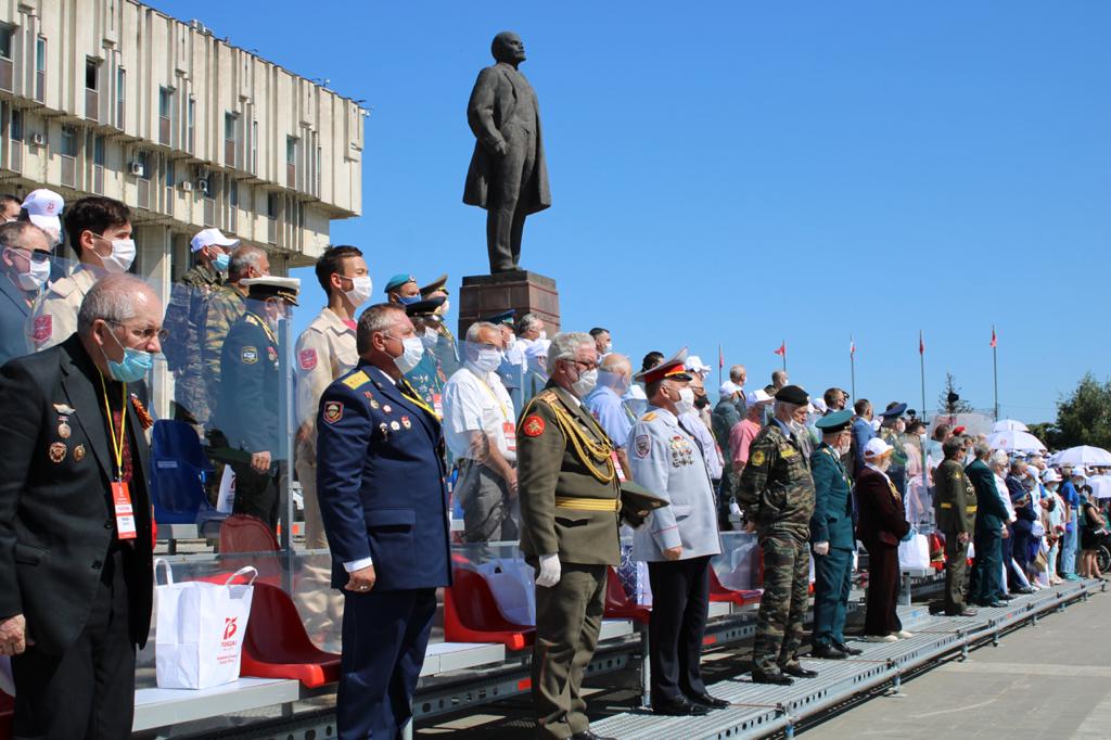 В 2020 году военный парад перенесли на 24 июня. По поручению губернатора при организации и проведении парада были предприняты беспрецедентные меры безопасности: рано утром площадь и места для зрителей продезинфицировали, при входе зрителям и участникам измеряли температуру, были установлены специальные дезинфицирующие тоннели. Число зрителей было ограничено: всего Парад Победы с трибун смотрели 20 ветеранов войны.