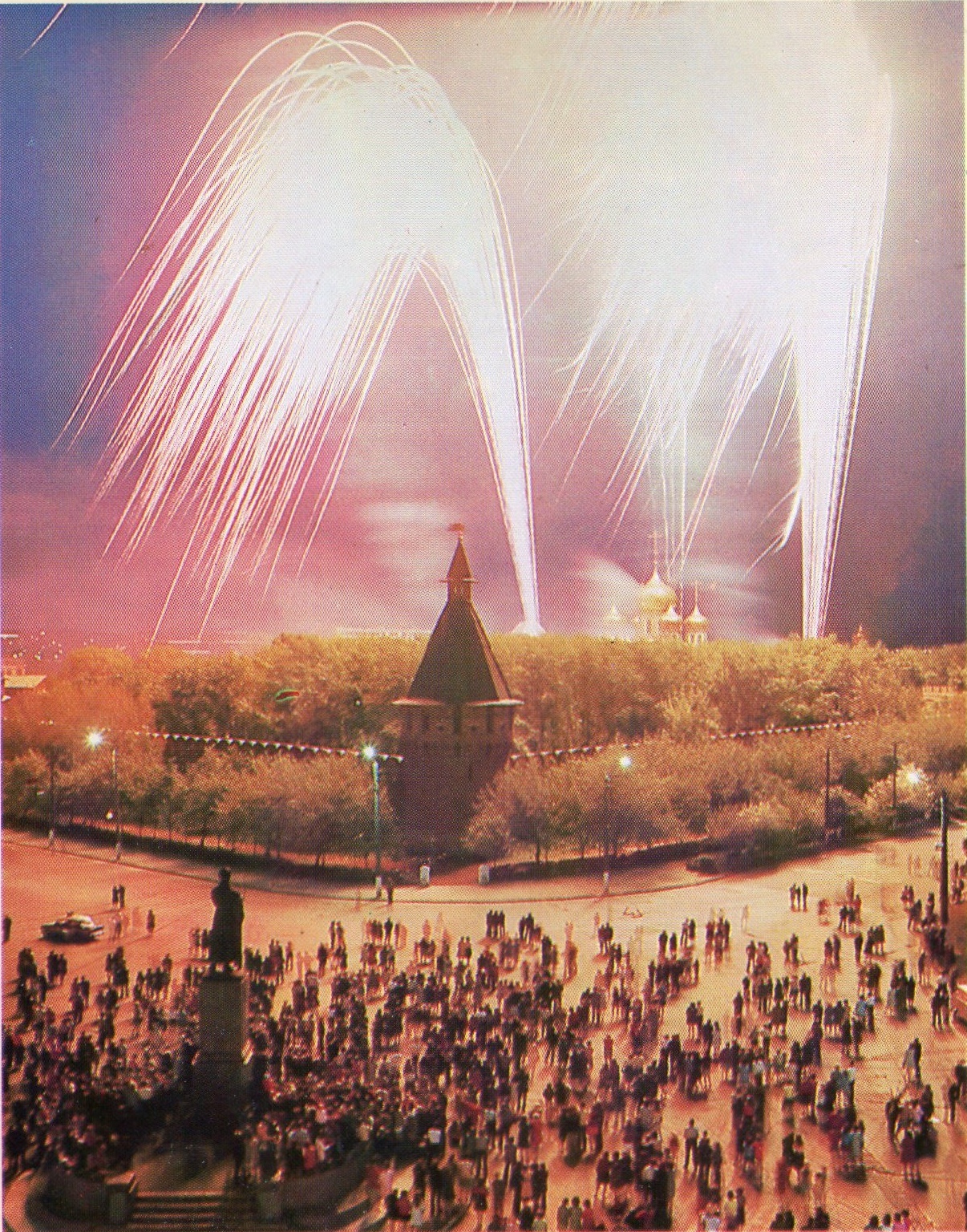 Праздничный салют над Тульским кремлем в честь Дня Победы. Фотограф неизвестен («Тула ушедшего века»).
