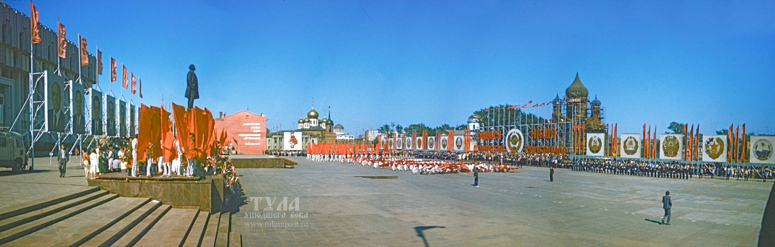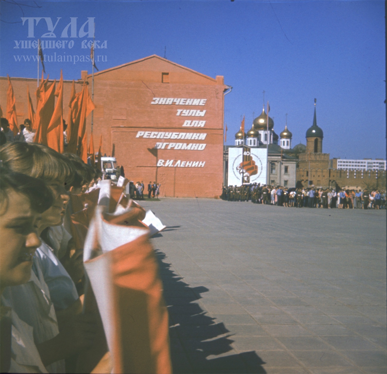 Праздничное шествие по проспекту Ленина (на фотографии — пересечение с ул. Первомайской). Автор снимка неизвестен («Тула ушедшего века»).