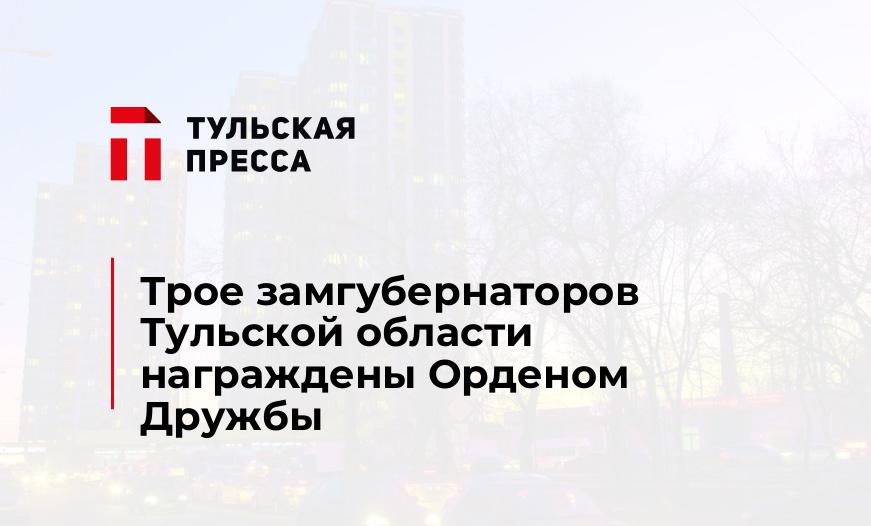 За большой вклад в социально-экономическое развитие Тульской области Владимир Путин отметил членов регионального правительства. В списке на награждение: первый заместитель губернатора — председатель правительства Тульской области Валерий Шерин, замгубернаторы Сергей Егоров и Ирина Волкова. Им будет вручен Орден Дружбы.